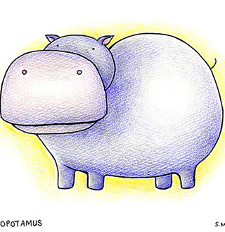 Hippopotamus, colored pencil and micron pen on watercolor paper