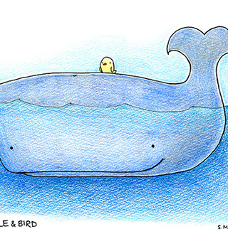 Whale & A Bird, colored pencil and micron pen on watercolor paper
